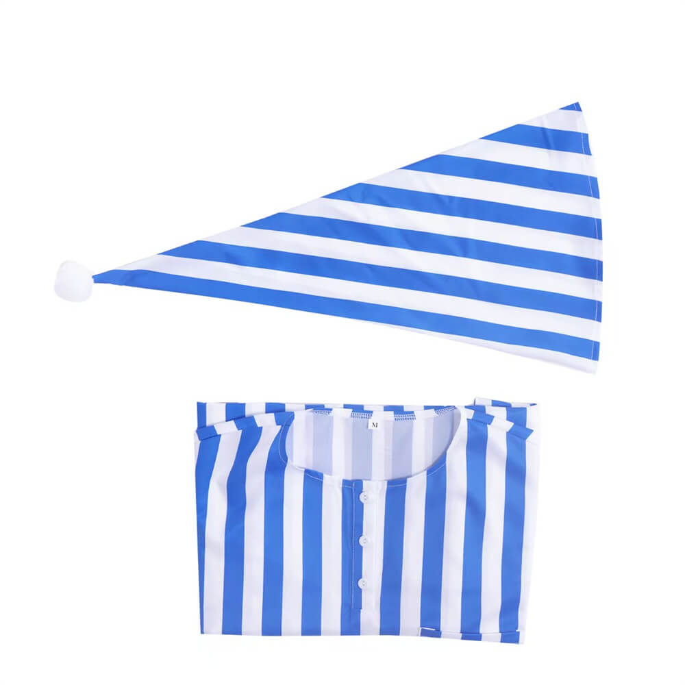 3Pcs Men Blue White Striped Pajamas Long Robe Nightgown Homewear With Glasses